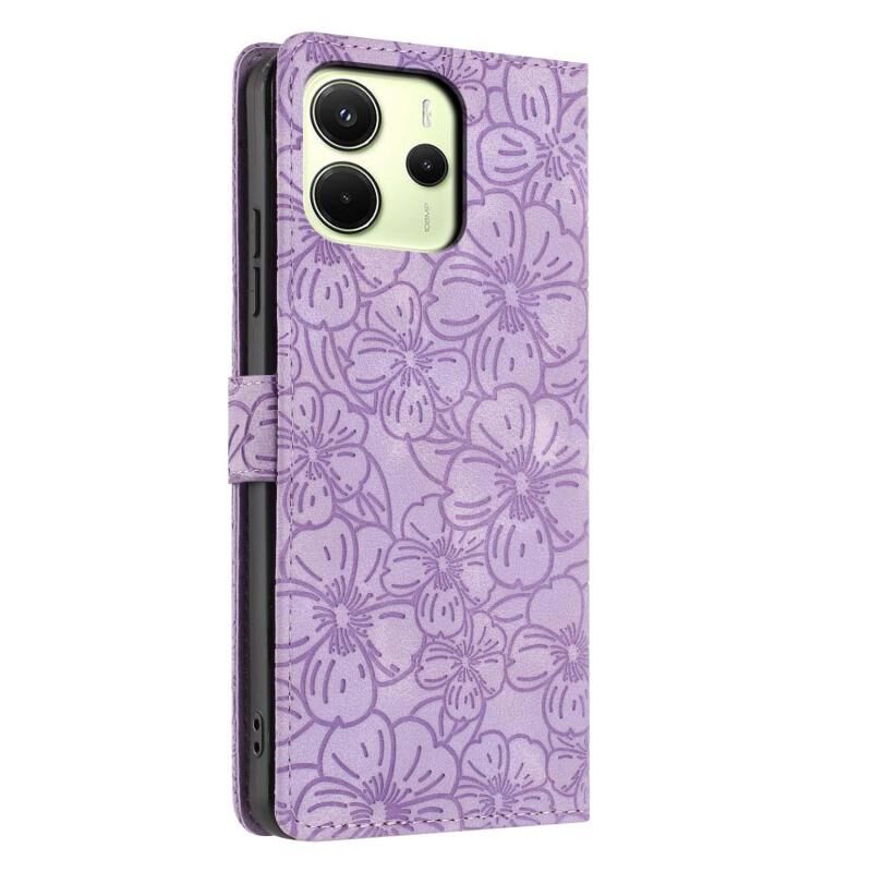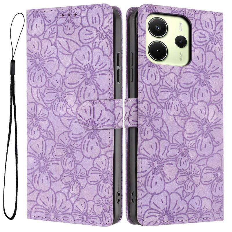 For Redmi Note 14 4G Global 163.25mm Cherry Blossoms Embossed Leather Phone Case(Purple)