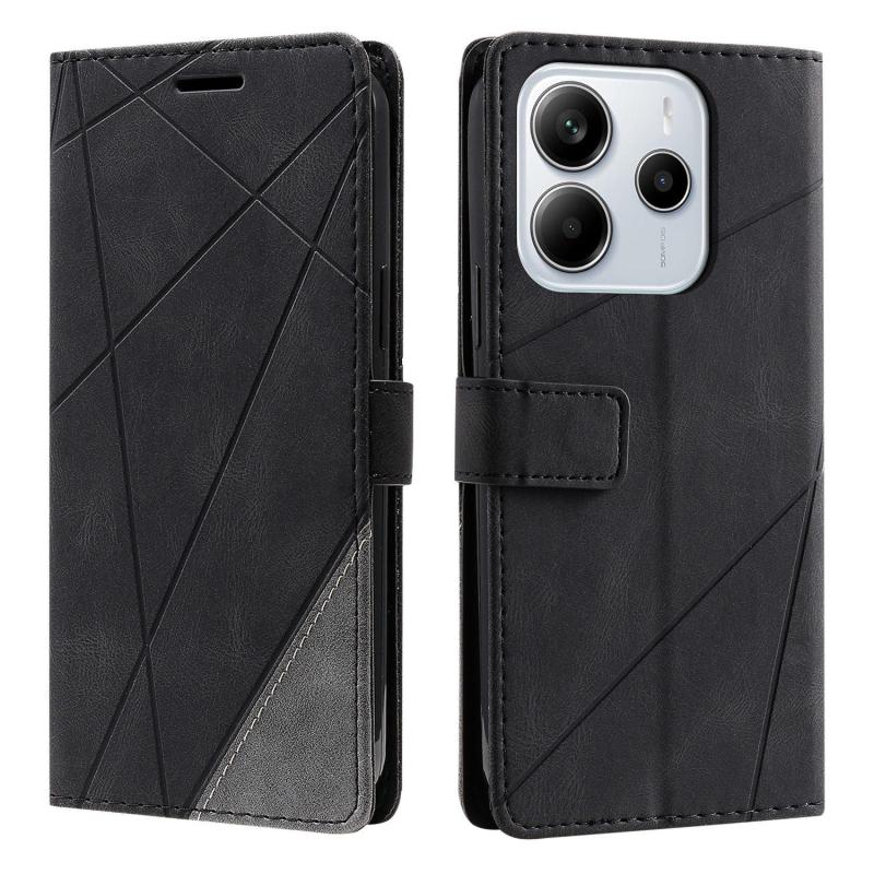 For Redmi Note 14 5G 163.25mm Skin Feel Splicing Leather Phone Case(Black)
