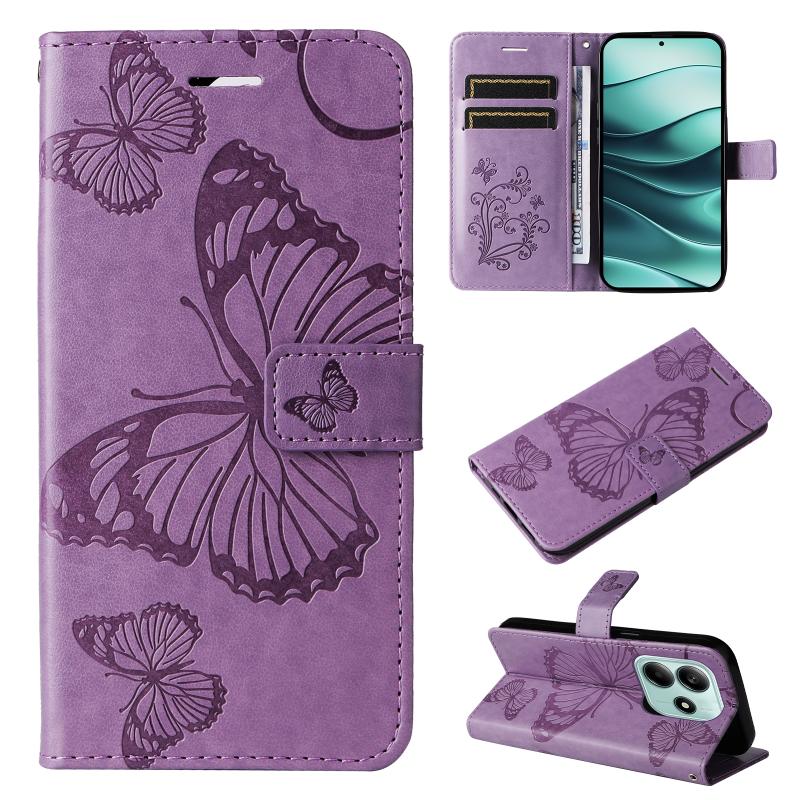 For Redmi Note 14 5G 3D Butterfly Embossed Pattern Flip Leather Phone Case(Purple)