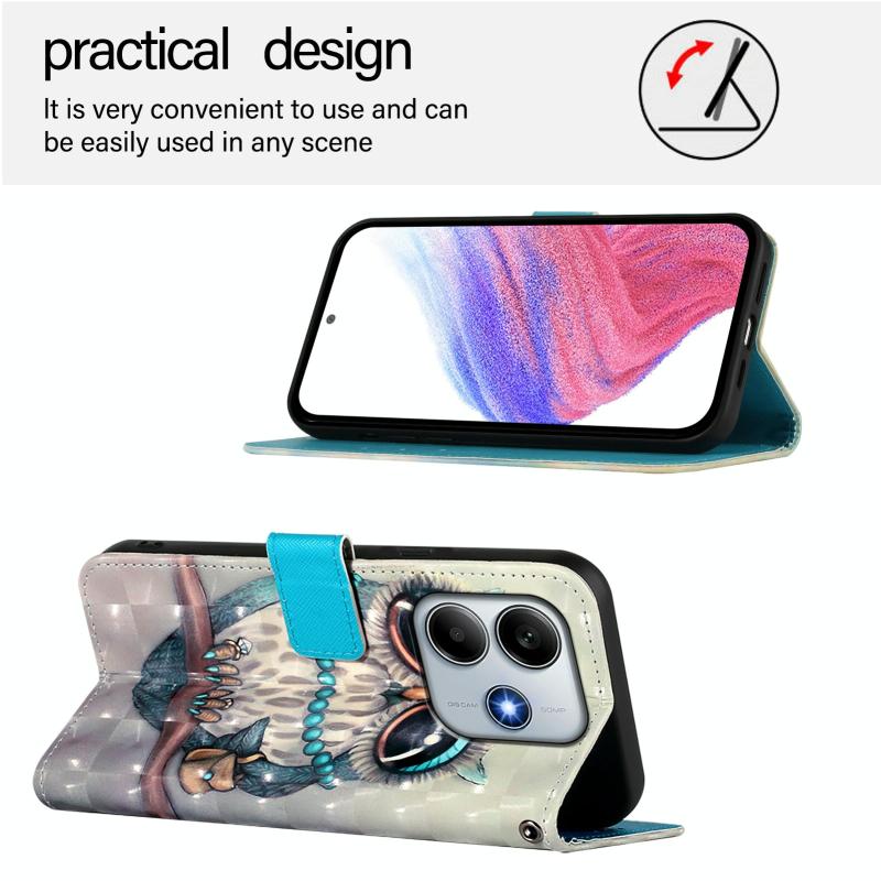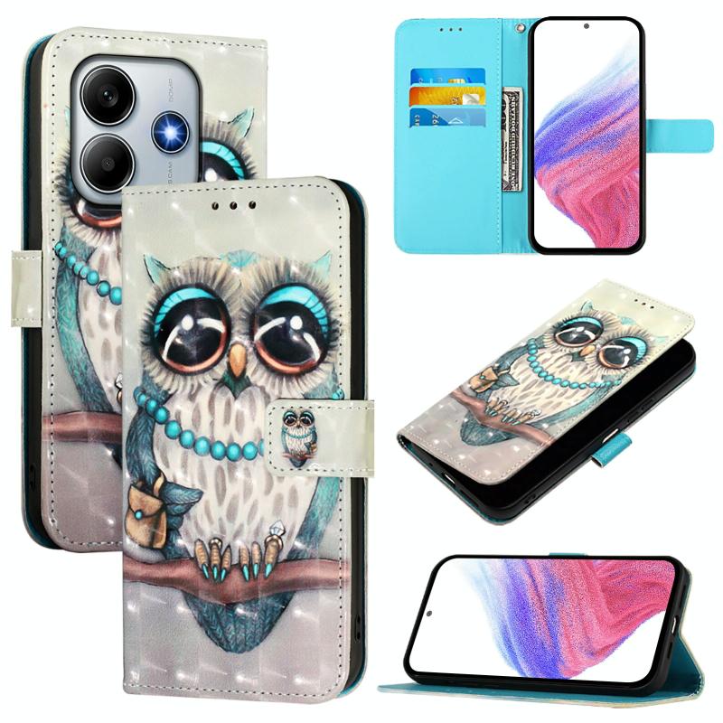 For Redmi Note 14 5G 3D Painting Horizontal Flip Leather Phone Case(Grey Owl)