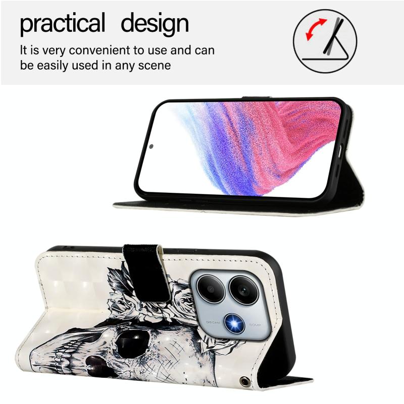 For Redmi Note 14 5G 3D Painting Horizontal Flip Leather Phone Case(Skull)
