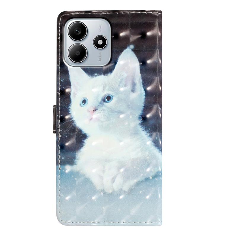 For Redmi Note 14 5G 3D Pattern Leather Phone Case(White Cat)