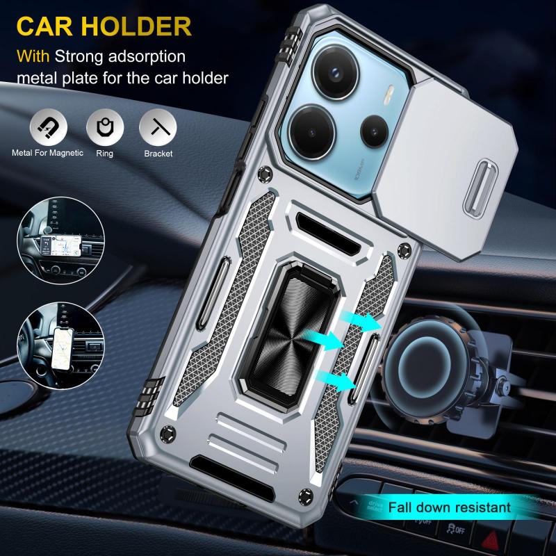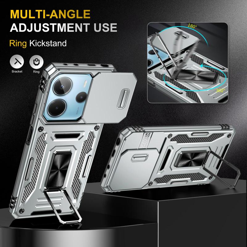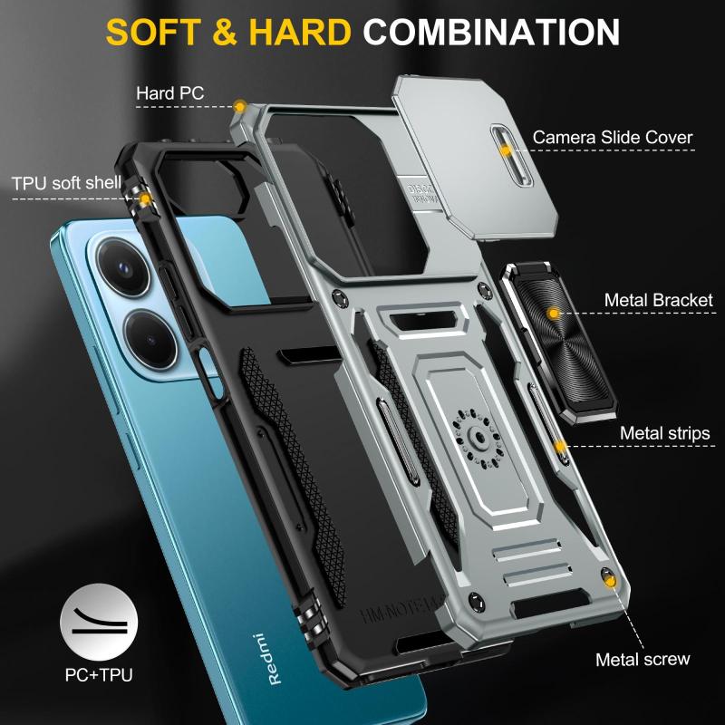 For Redmi Note 14 5G / 4G 163.25mm Armor PC Hybrid TPU Camera Shield Phone Case(Grey)