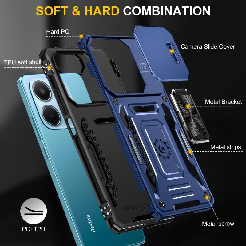 For Redmi Note 14 5G / 4G 163.25mm Armor PC Hybrid TPU Camera Shield Phone Case(Navy Blue)