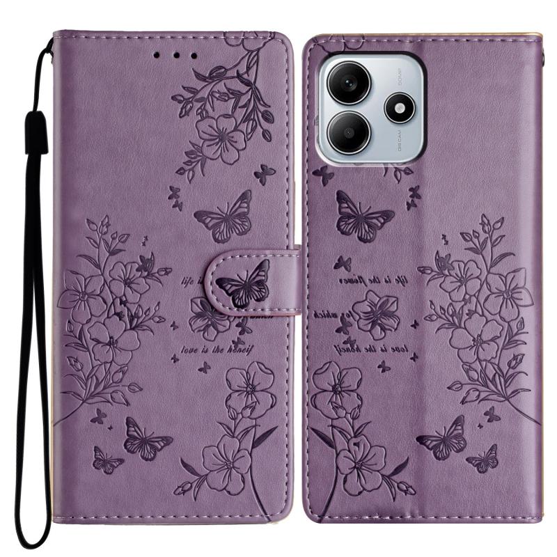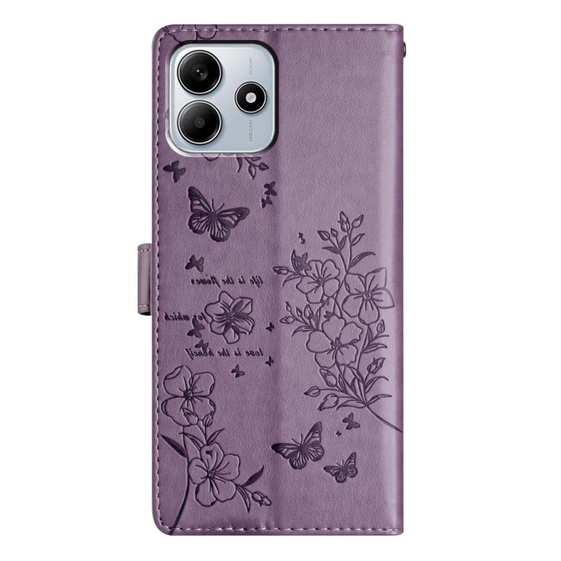 For Redmi Note 14 5G Butterflies and Flowers Leather Phone Case(Purple)