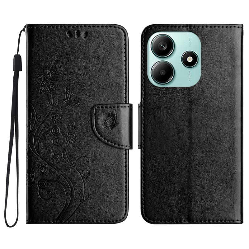 For Redmi Note 14 5G Butterfly Flower Pattern Flip Leather Phone Case(Black)