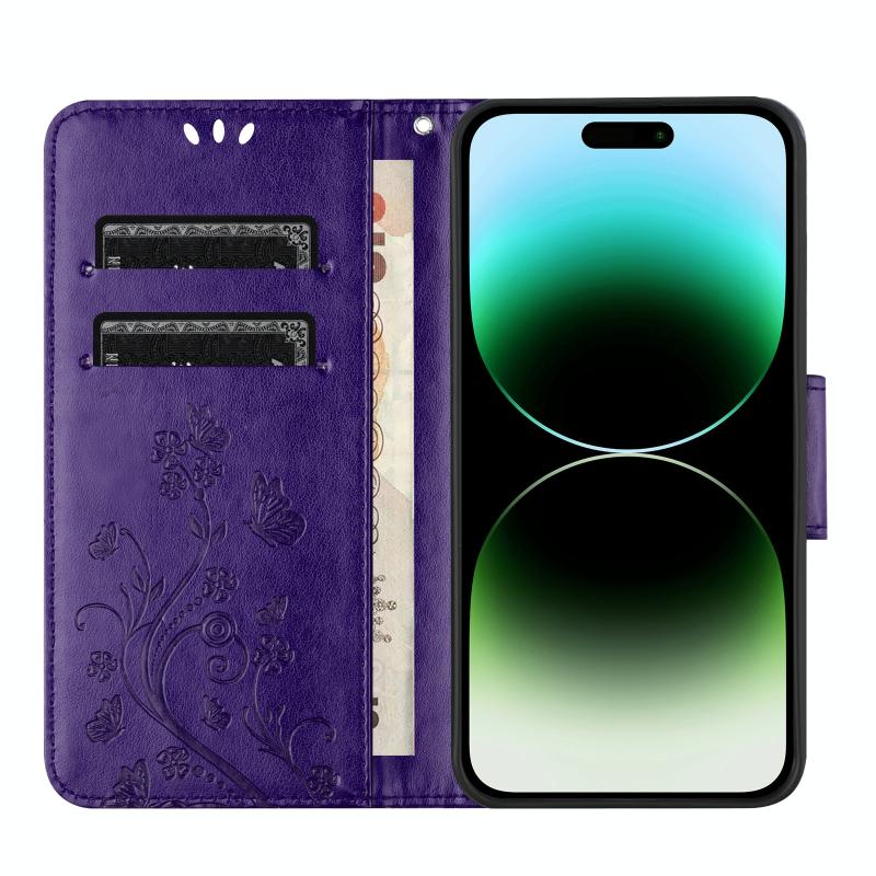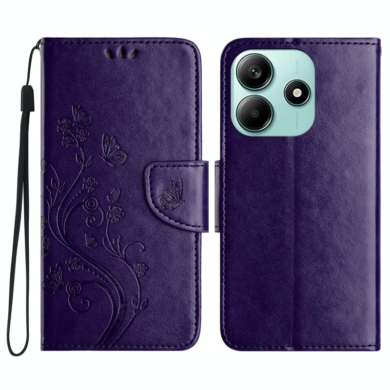 For Redmi Note 14 5G Butterfly Flower Pattern Flip Leather Phone Case(Dark Purple)