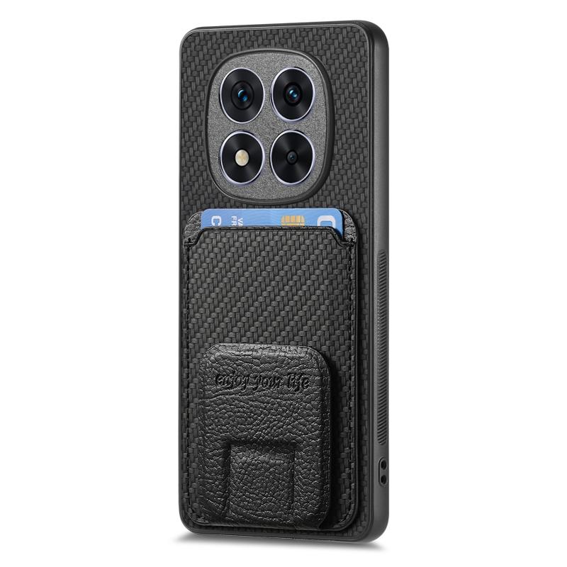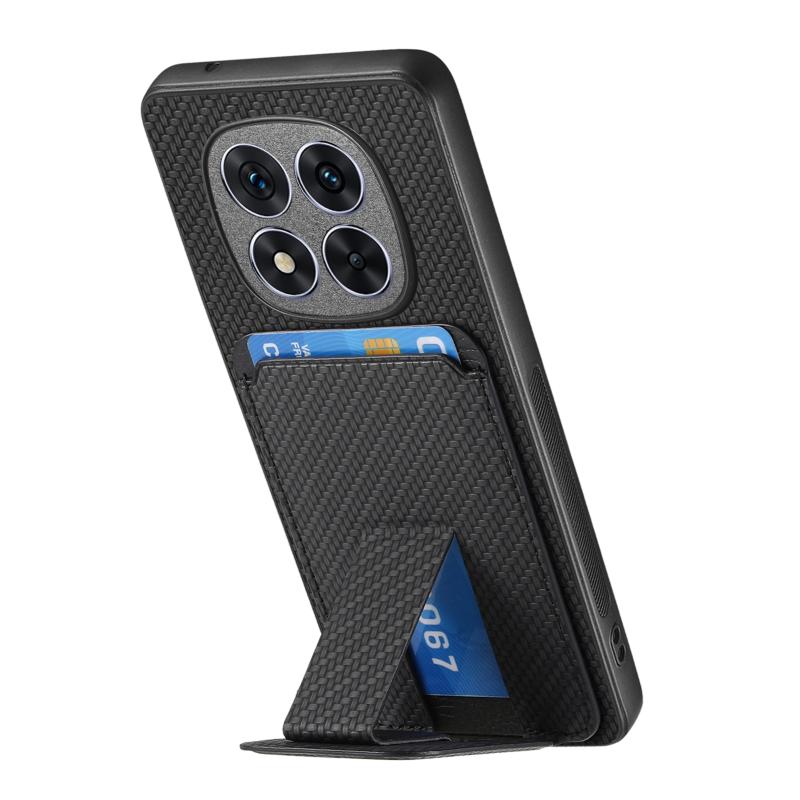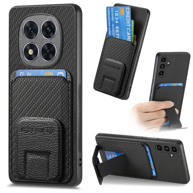 For Redmi Note 14 5G Carbon Fiber Card Bag Fold Stand Phone Case(Black)