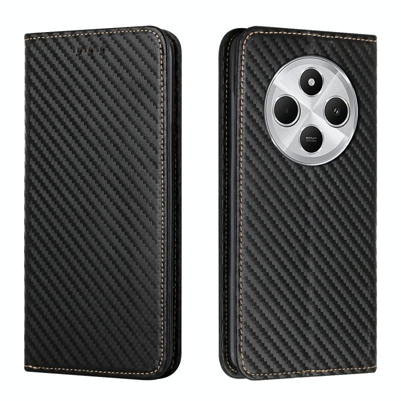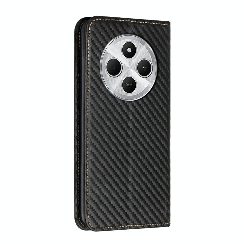 For Redmi Note 14 5G Carbon Fiber Texture Magnetic Flip Leather Phone Case(Black)