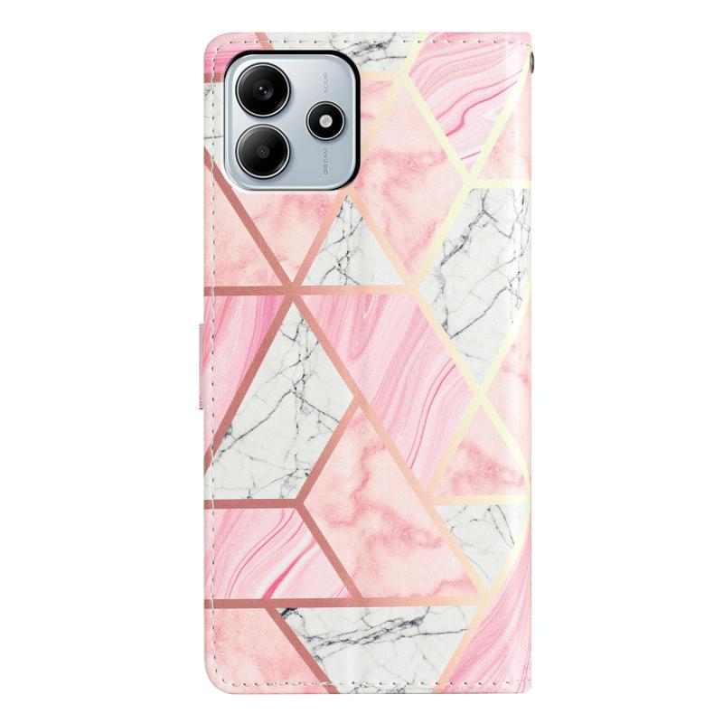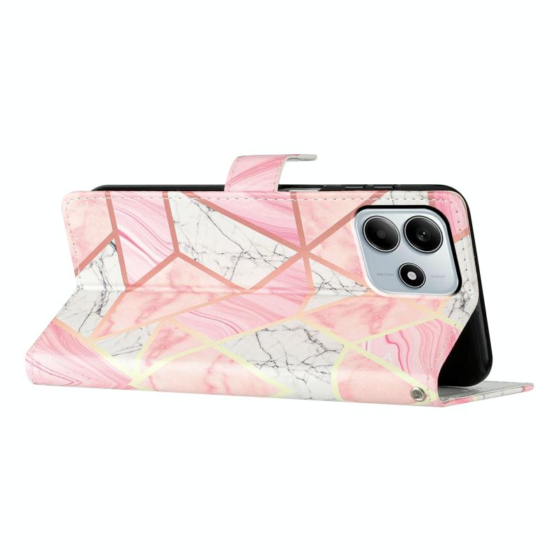 For Redmi Note 14 5G Colored Drawing Leather Phone Case(Pink Marble)