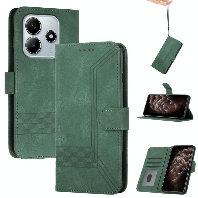 For Redmi Note 14 5G Cubic Skin Feel Flip Leather Phone Case(Green)