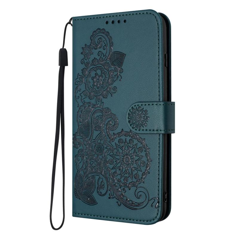 For Redmi Note 14 5G Datura Flower Embossed Flip Leather Phone Case(Dark Green)