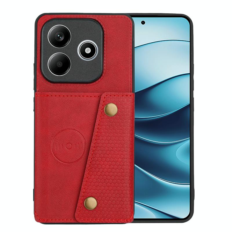 For Redmi Note 14 5G Double Buckle Card Slots Magnetic Phone Case(Red)
