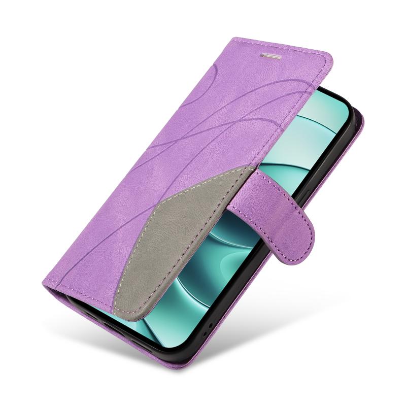 For Redmi Note 14 5G Dual-color Splicing Flip Leather Phone Case(Purple)