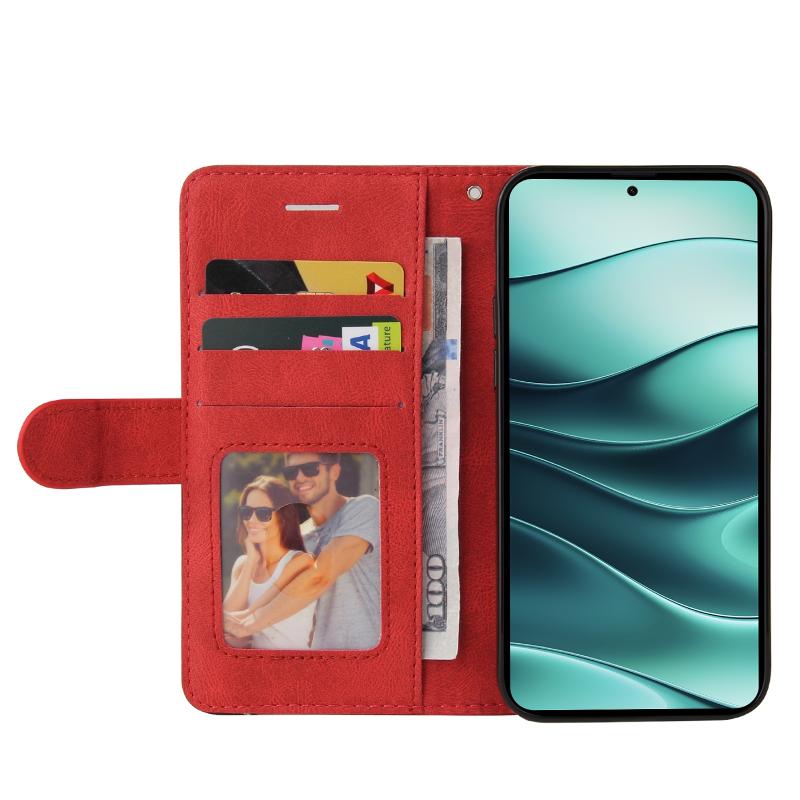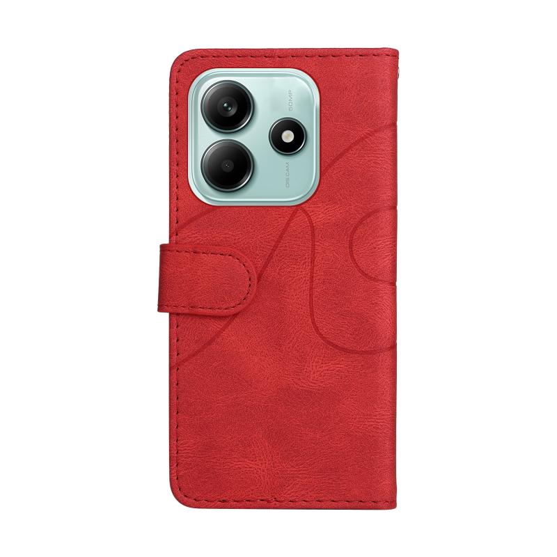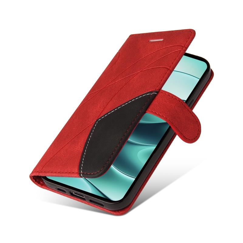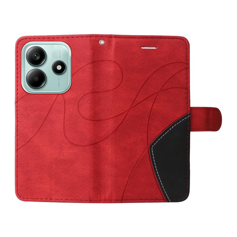 For Redmi Note 14 5G Dual-color Splicing Flip Leather Phone Case(Red)