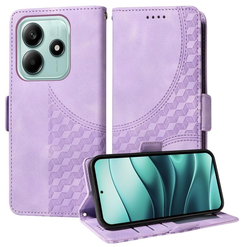 For Redmi Note 14 5G Embossed Rhombus Starry Leather Phone Case(Purple)