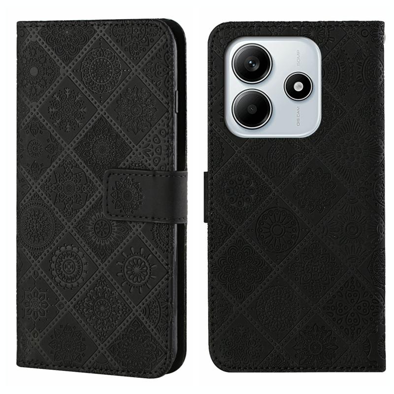 For Redmi Note 14 5G Ethnic Style Embossed Pattern Leather Phone Case(Black)