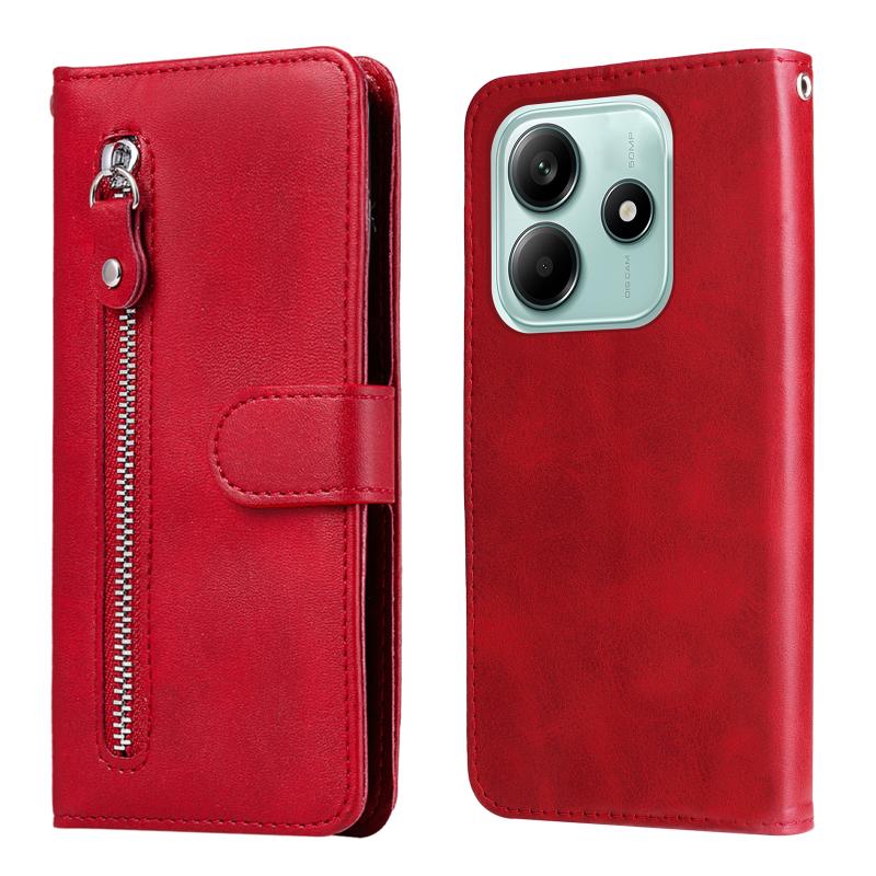For Redmi Note 14 5G Fashion Calf Texture Zipper Leather Phone Case(Red)