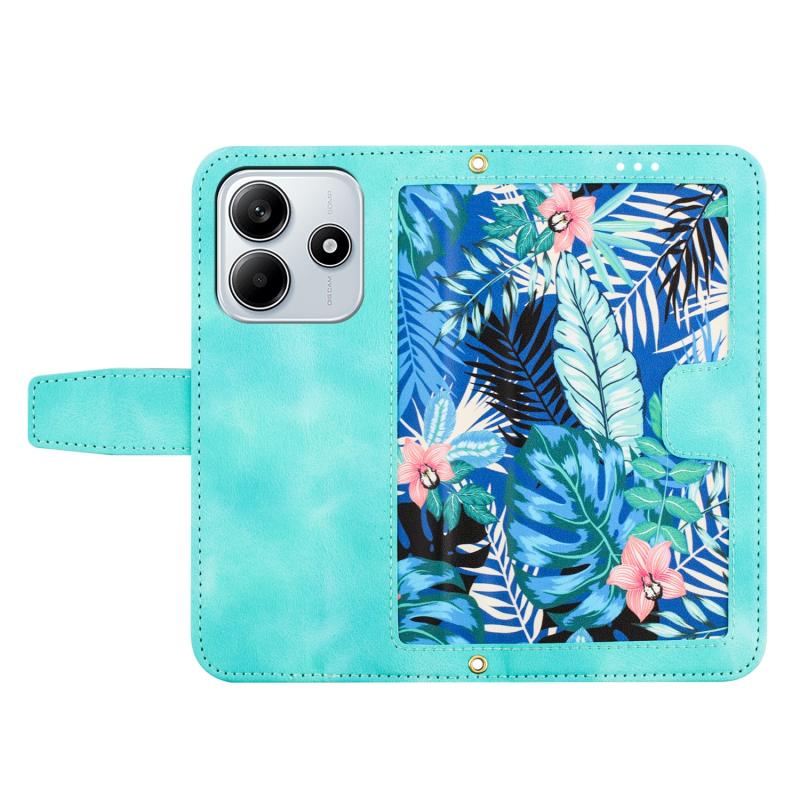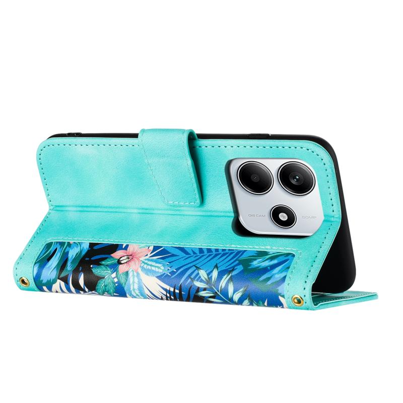 For Redmi Note 14 5G Floral Pattern Leather Phone Case with Lanyard(Green)