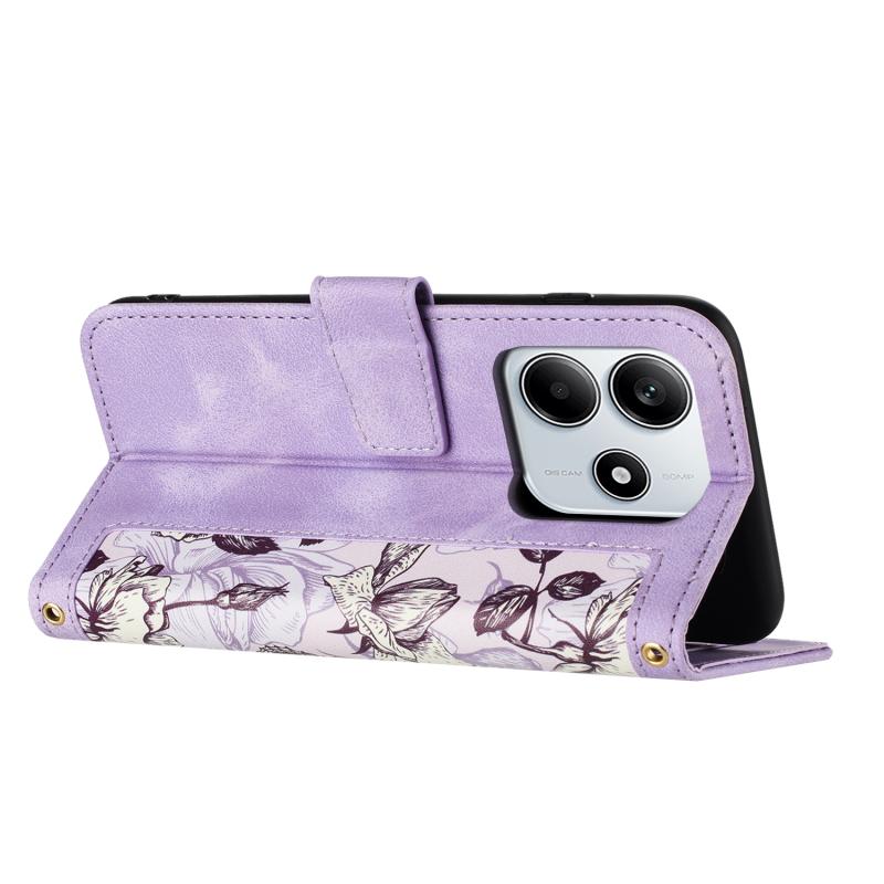 For Redmi Note 14 5G Floral Pattern Leather Phone Case with Lanyard(Light Purple)