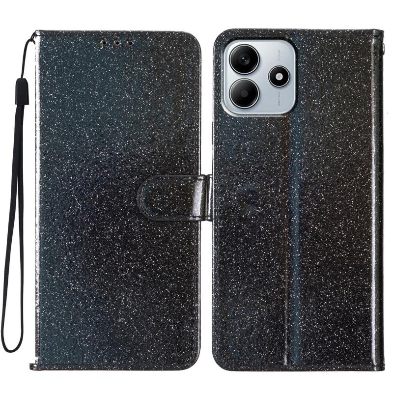 For Redmi Note 14 5G Glitter Powder Flip Leather Phone Case(Black)