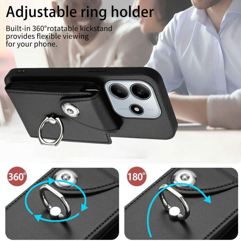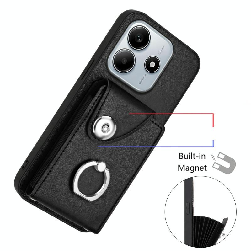For Redmi Note 14 5G Global Organ Card Bag Ring Holder Phone Case(Black)