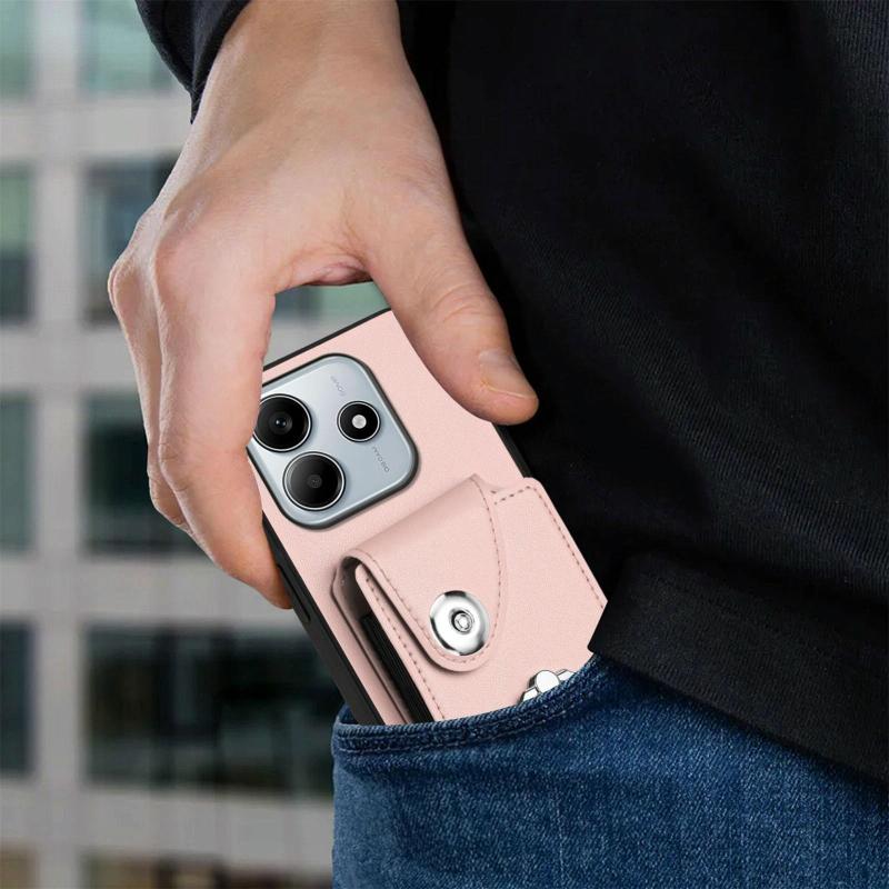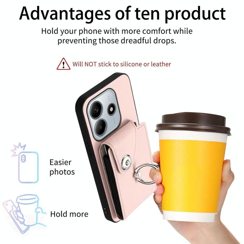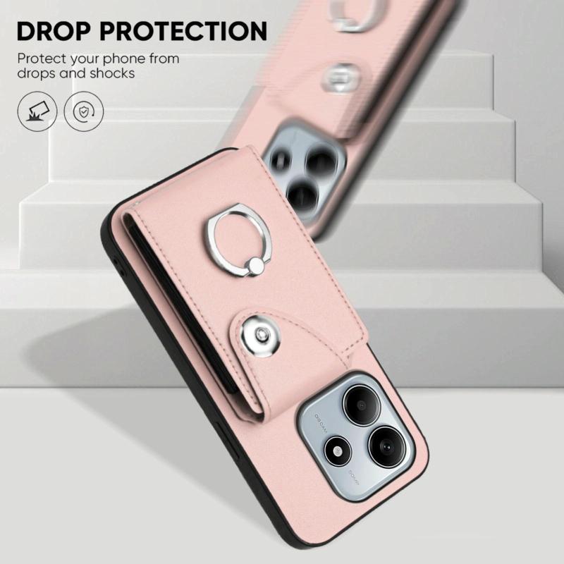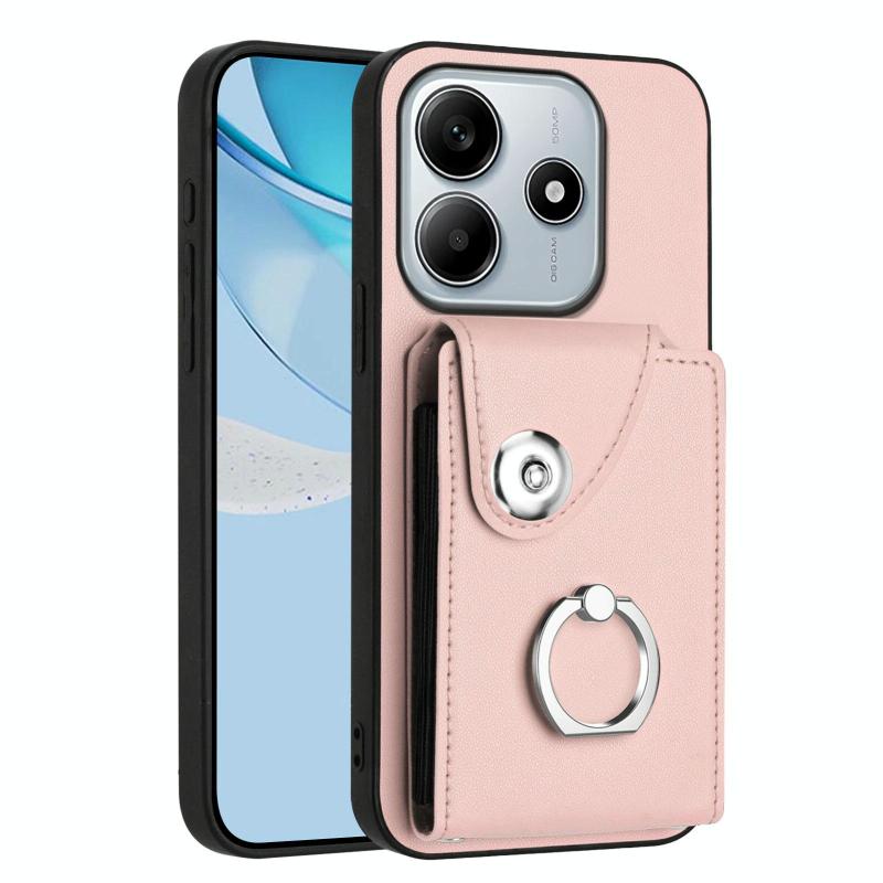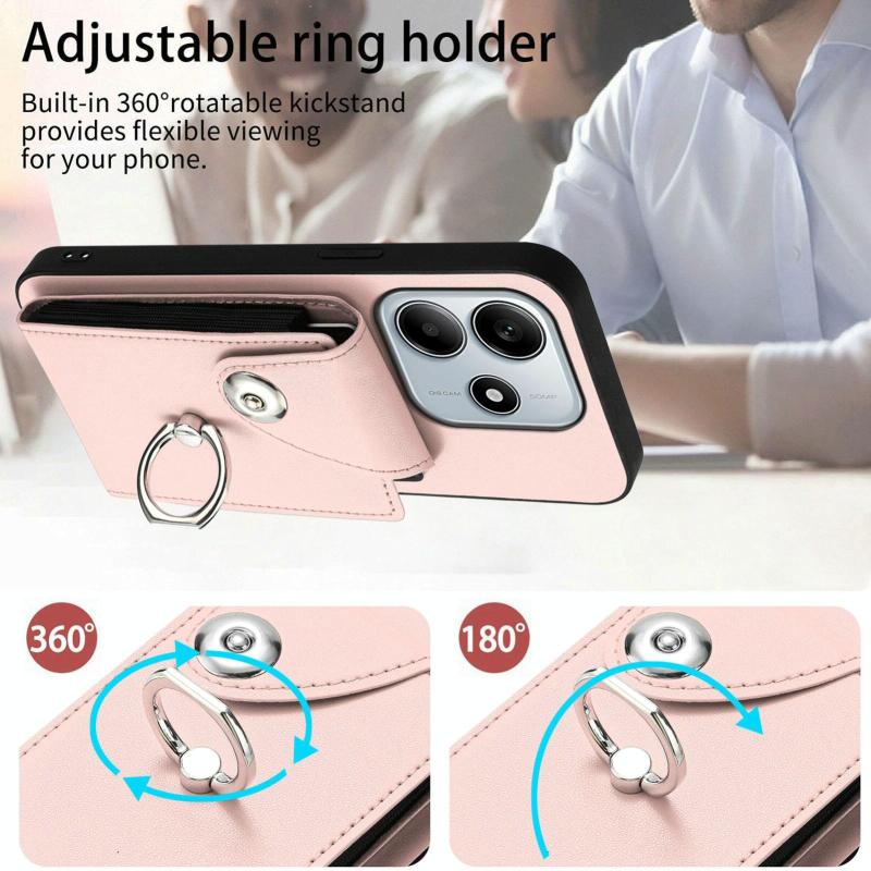For Redmi Note 14 5G Global Organ Card Bag Ring Holder Phone Case(Pink)