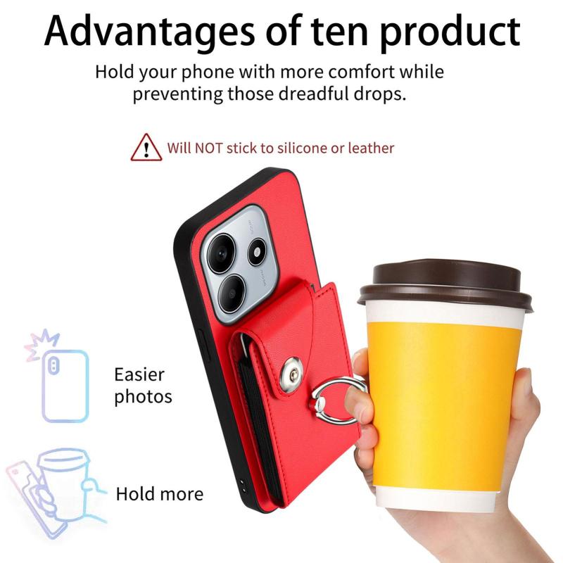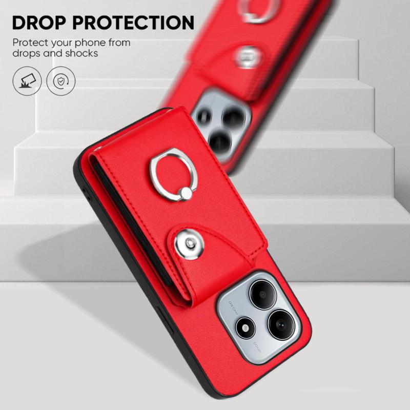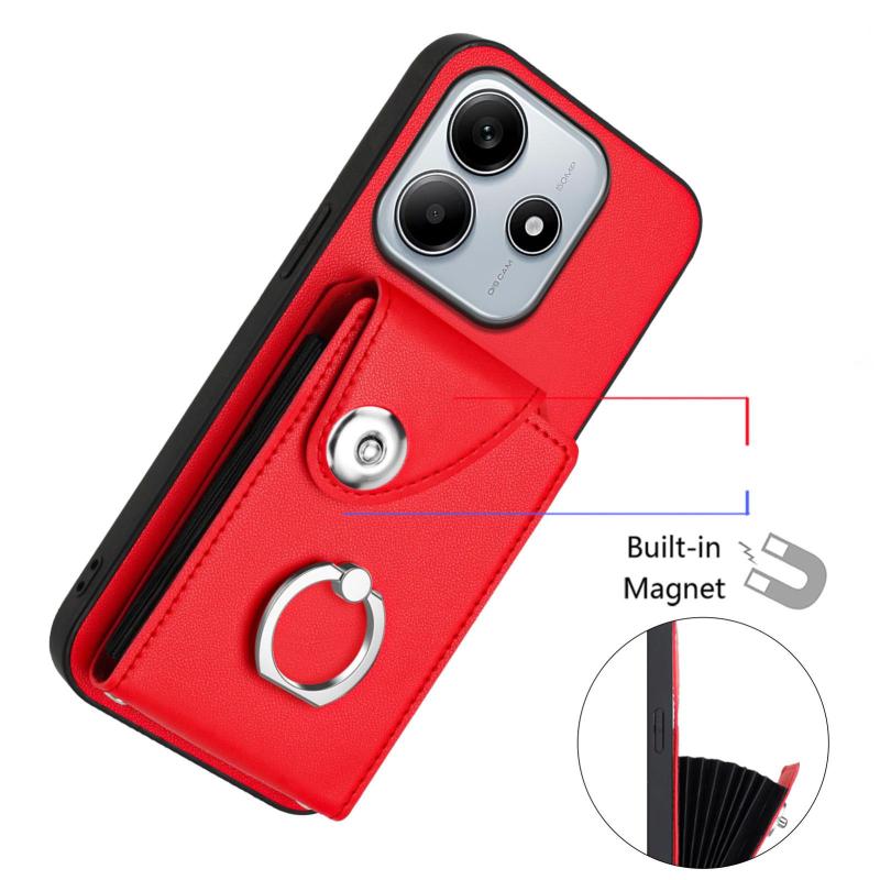 For Redmi Note 14 5G Global Organ Card Bag Ring Holder Phone Case(Red)