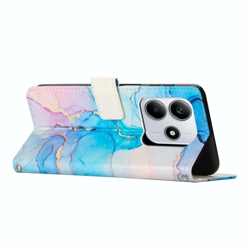 For Redmi Note 14 5G Global Painted Marble Pattern Leather Phone Case(Pink Green)