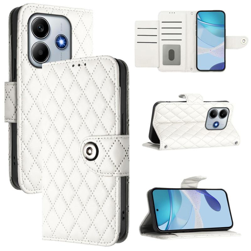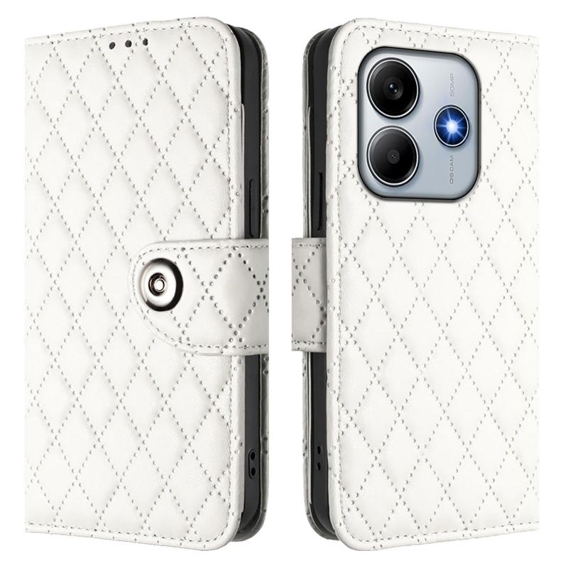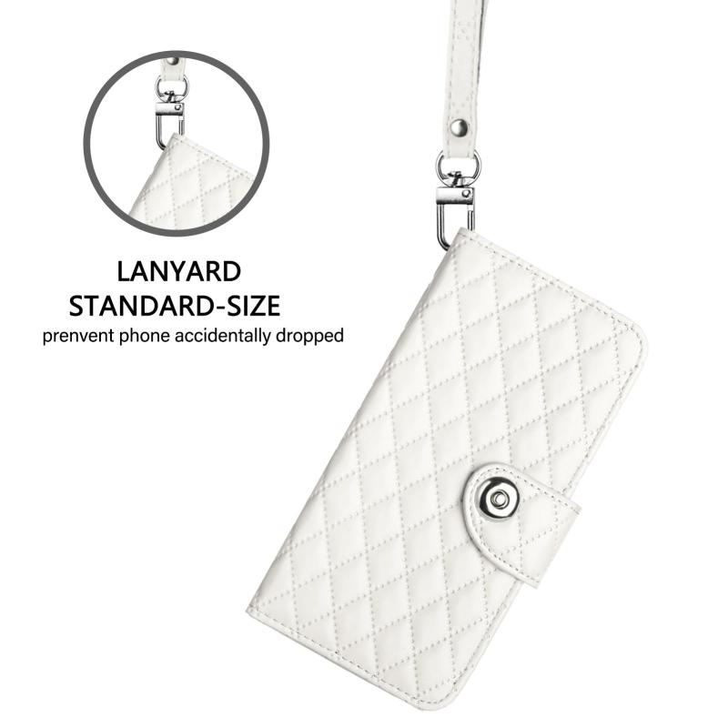 For Redmi Note 14 5G Global Rhombic Texture Flip Leather Phone Case with Lanyard(White)