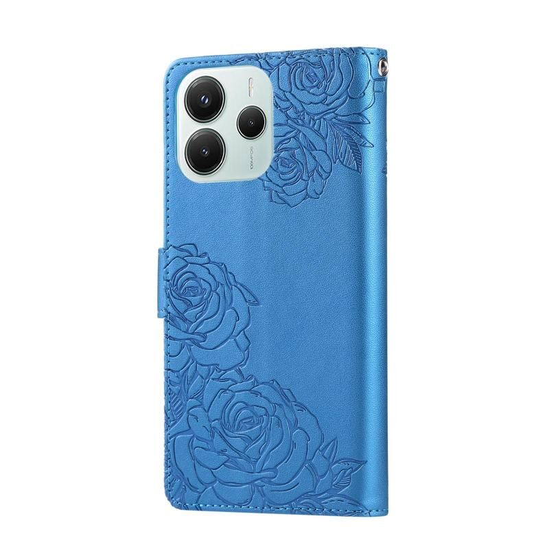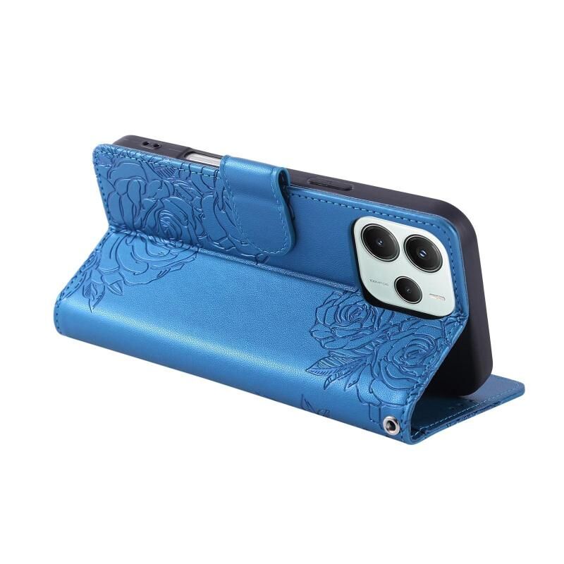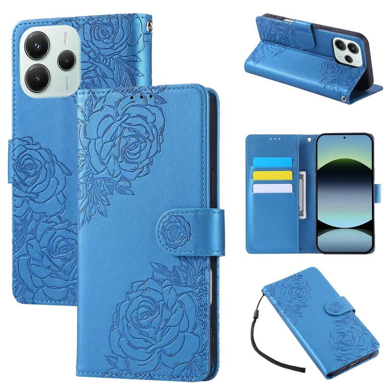 For Redmi Note 14 5G Global Rose Flower Embossed 3-Card Slots Leather Phone Case(Blue)