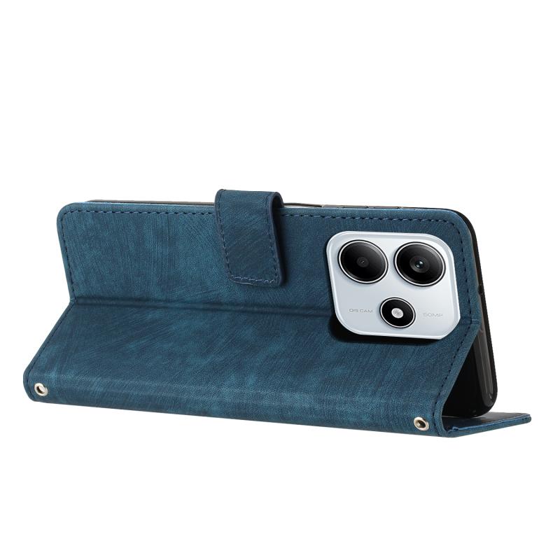 For Redmi Note 14 5G Global Skin Feel Stripe Pattern Leather Phone Case with Long Lanyard(Blue)