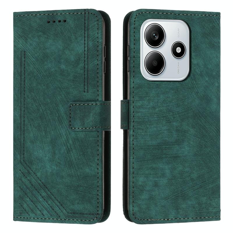 For Redmi Note 14 5G Global Skin Feel Stripe Pattern Leather Phone Case with Long Lanyard(Green)