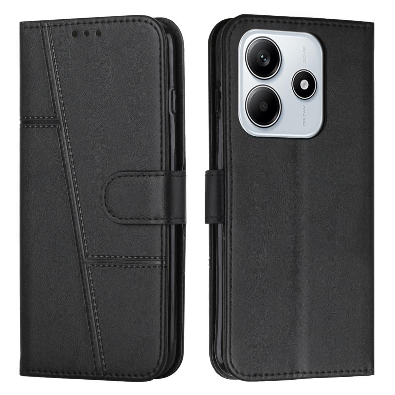 For Redmi Note 14 5G Global Stitching Calf Texture Buckle Leather Phone Case(Black)