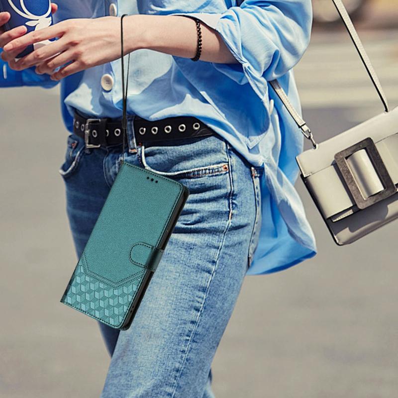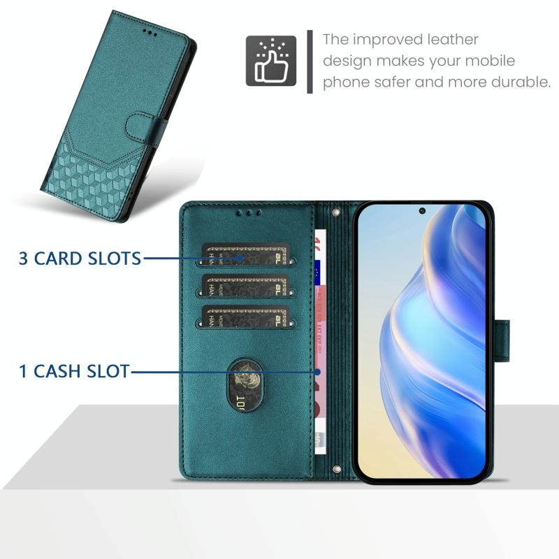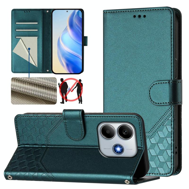 For Redmi Note 14 5G Honeycomb Embossing RFID Leather Phone Case(Peacock Green)