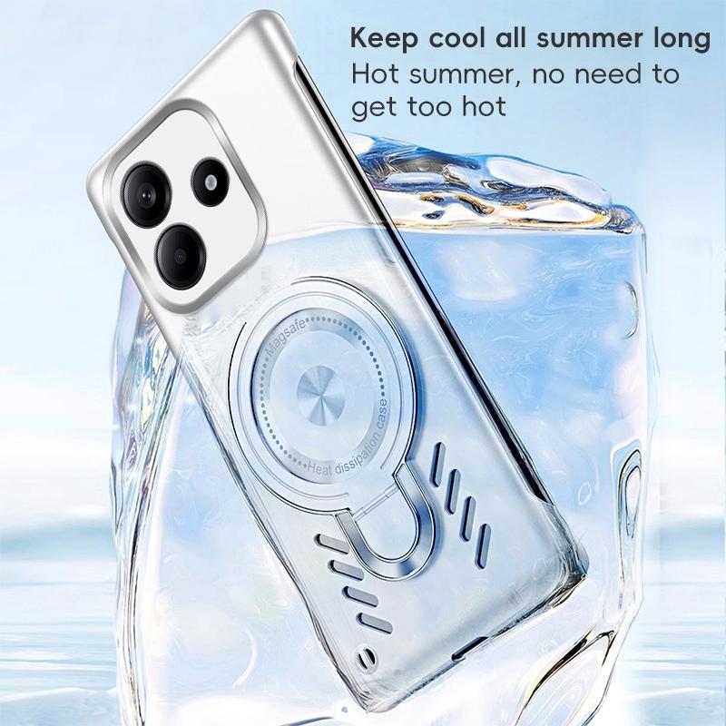 For Redmi Note 14 5G Ice Sense Series Graphene Cooling MagSafe Holder Phone Case(Silver)