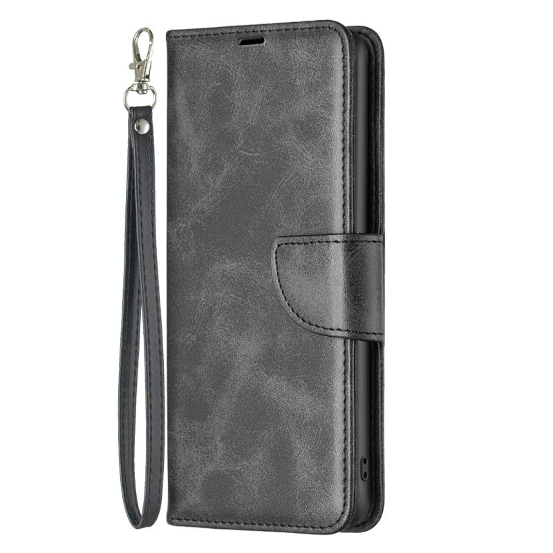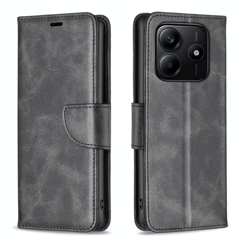 For Redmi Note 14 5G Lambskin Texture Pure Color Flip Leather Phone Case(Black)