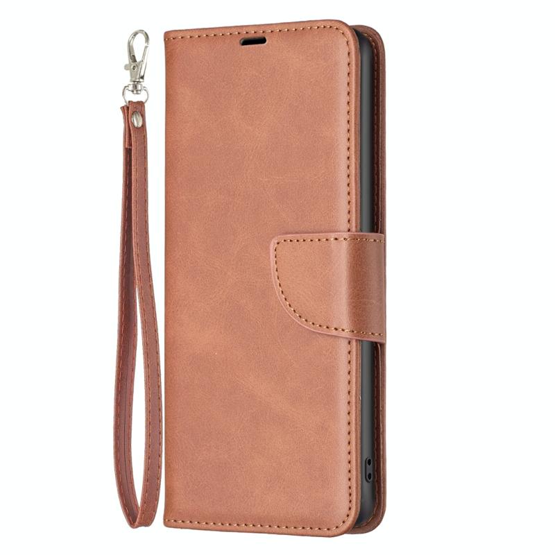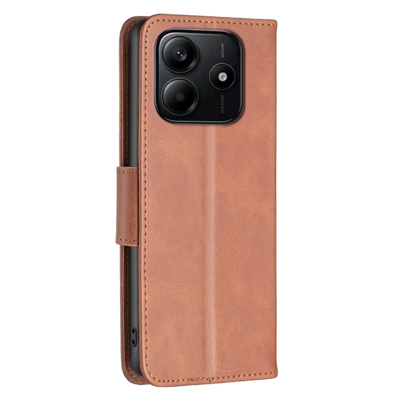 For Redmi Note 14 5G Lambskin Texture Pure Color Flip Leather Phone Case(Brown)