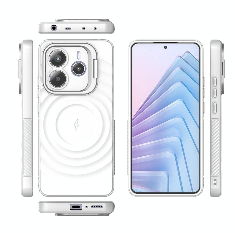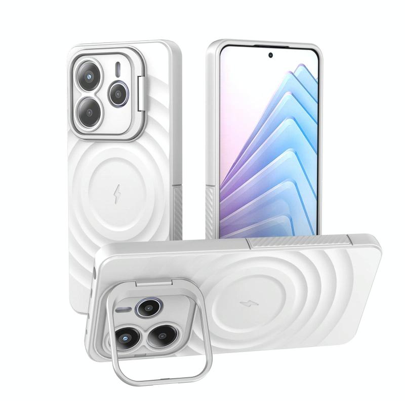 For Redmi Note 14 5G Lens Frame Bracket Corrugated MagSafe Phone Case(White)