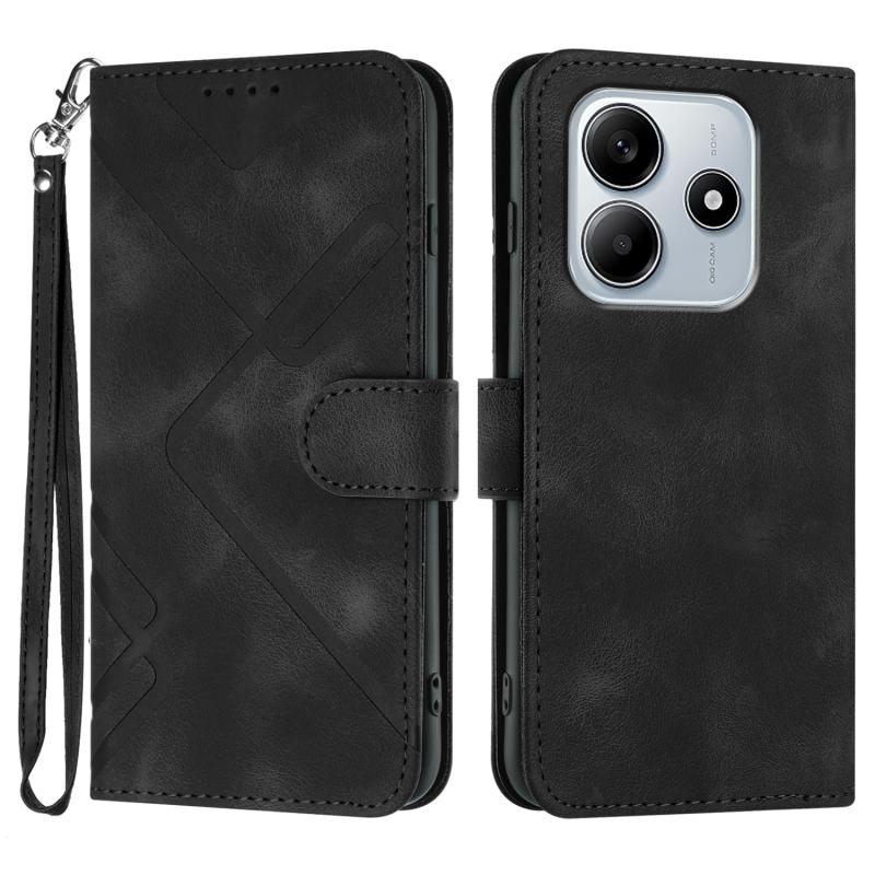 For Redmi Note 14 5G Line Pattern Skin Feel Leather Phone Case(Black)