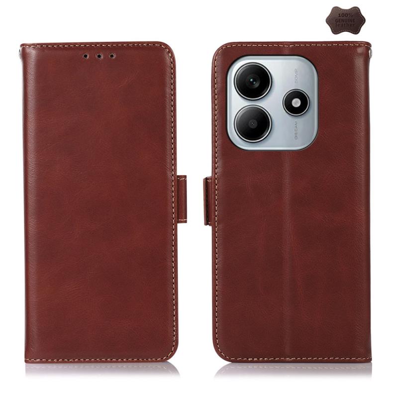 For Redmi Note 14 5G Magnetic Crazy Horse Texture Genuine Leather RFID Phone Case(Brown)