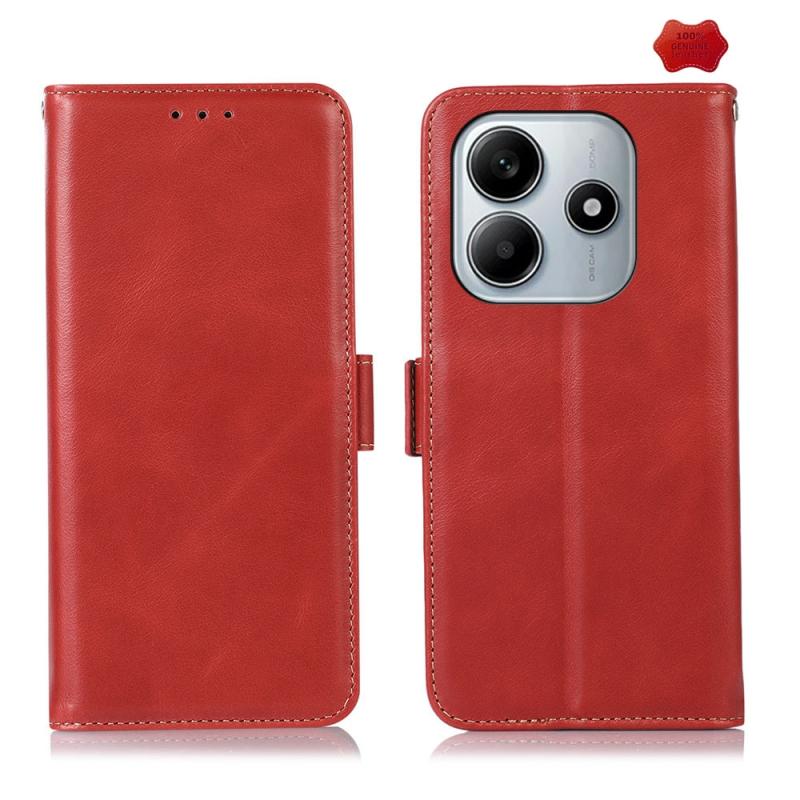 For Redmi Note 14 5G Magnetic Crazy Horse Texture Genuine Leather RFID Phone Case(Red)