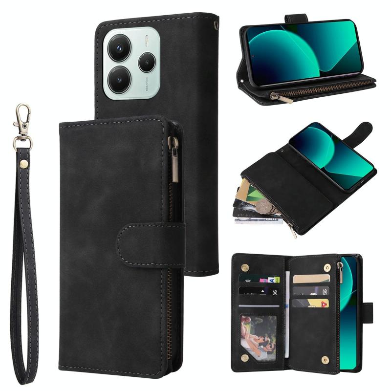 For Redmi Note 14 5G Multifunctional Multi-Card Wallet Phone Leather Case(Black)