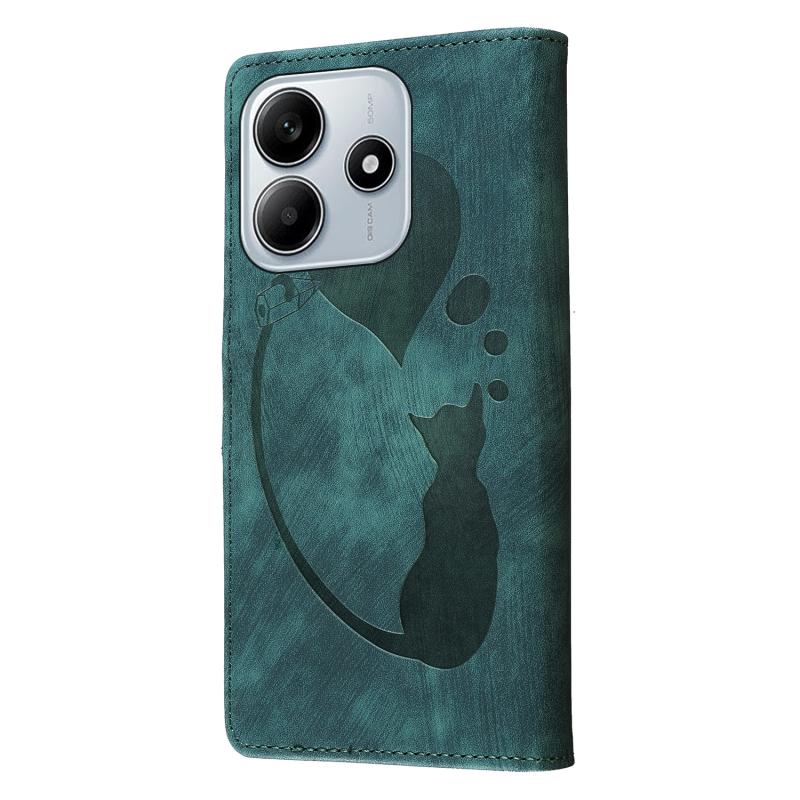 For Redmi Note 14 5G Pen Heart Cat Embossed Leather Phone Case(Green)