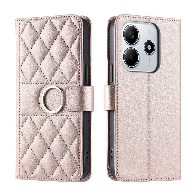 For Redmi Note 14 5G / Poco M7 Pro 5G Ring Buckle Rhombic Leather Phone Case(Rose Gold)