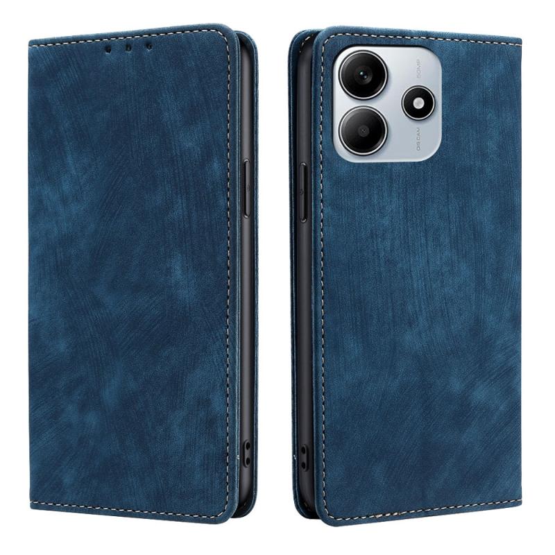 For Redmi Note 14 5G RFID Anti-theft Brush Magnetic Leather Phone Case(Blue)