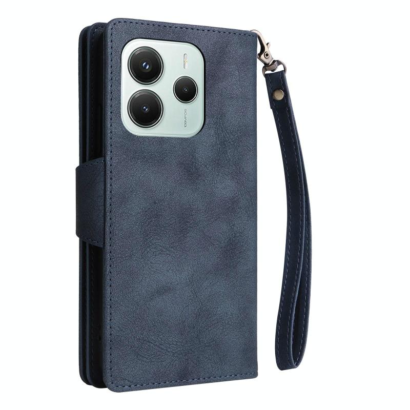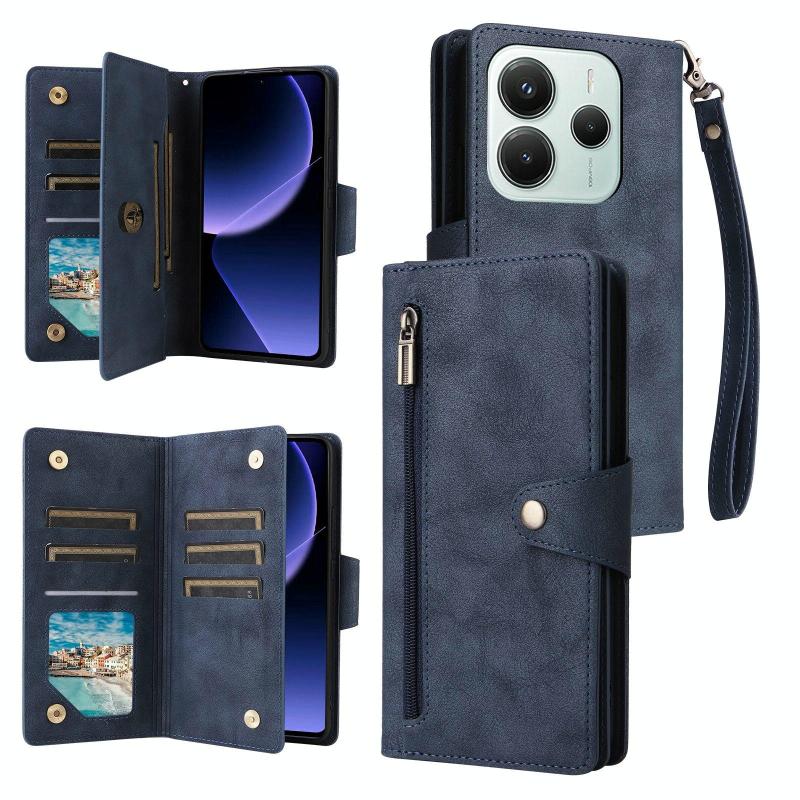 For Redmi Note 14 5G Rivet Buckle 9 Cards Three Fold Leather Phone Case(Blue)