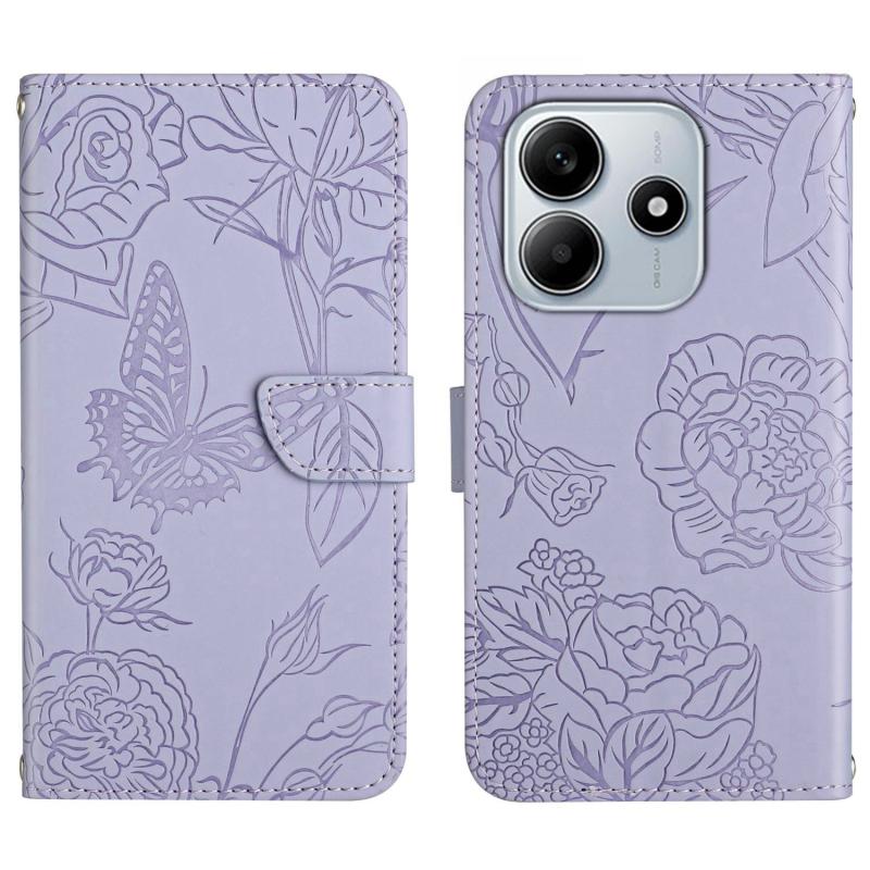 For Redmi Note 14 5G Skin Feel Butterfly Embossed Flip Leather Phone Case(Purple)