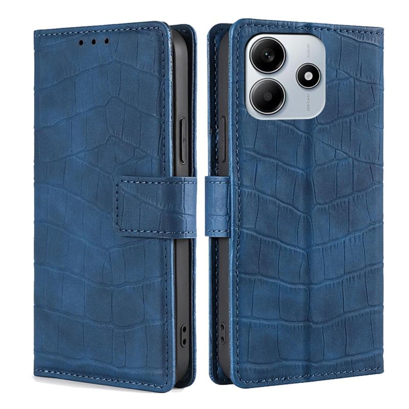 For Redmi Note 14 5G Skin Feel Crocodile Magnetic Clasp Leather Phone Case(Blue)