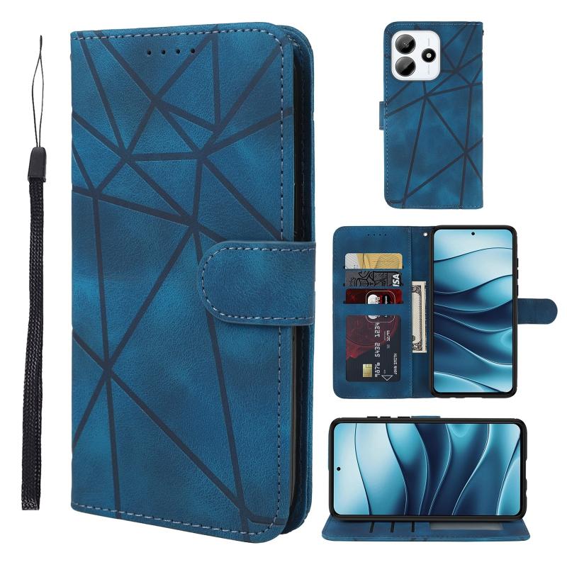 For Redmi Note 14 5G Skin Feel Geometric Lines Leather Phone Case(Blue)